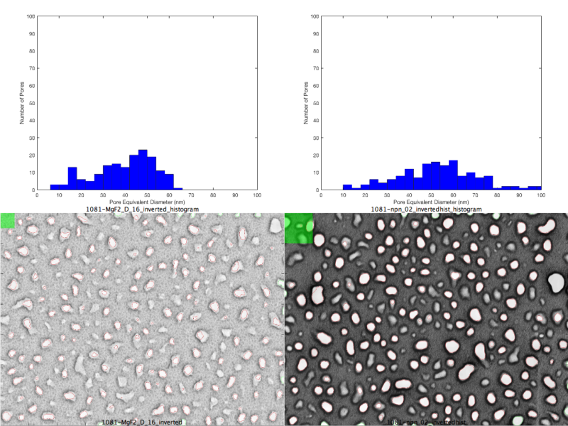 1081 NPN before and after MgF2 deposition. The pore diameter distributions are fairly broad.