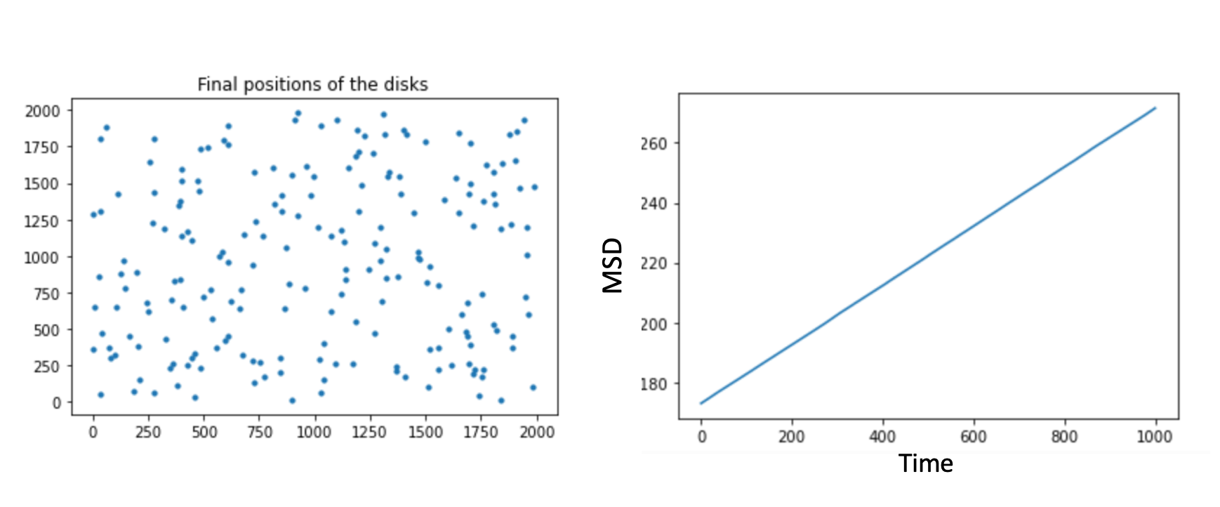 Fig.5. Final position of the cells and the mean square displacement graph.